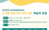 교육 최준규 기자2026. 02.06[시사토픽뉴스]인천광역시교육청평생학습관은 오는 23일부터 ‘재능기부 프로그램’을 운영한다. 이번 프로그램은 시민이 강사로 참여해 자신의 전문성과 경험을 공유하는 참여형 평생학습 활동으로, 매월 새로운 주제의 강좌를 통해 생활 속 배움의 기회를 제공한다. 2월부터 운영되는 강좌는 ‘시니어 요가’, ‘시니어 필라테스’, ‘근력 스트레칭’, ‘나를 닮은 꽃그림’, ‘내 마음속의 논어’ 등 총 5가지이다. 수강 신청은 11일 오전 10시부터 평생학습관 누리집에서 선착순으로 진행되며, 자세한 사항은 누리집의 공지사항을 확인하거나 평생교...