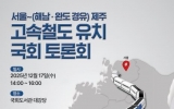 정치 최준규 기자2025. 12.09[시사토픽뉴스]전남 완도군이 ‘서울~해남·완도 경유 제주 고속철도 사업’을 '제5차 국가 철도망 구축 계획'에 반영하기 위해 12월 17일 오후 2시 국회도서관 대강당에서 토론회를 개최한다. 토론회는 지역구 의원인 박지원 국회의원을 필두로 민홍철, 민병덕, 민형배, 허종식, 손명수 국회의원이 공동 주최하며, 완도군과 해남군이 공동 주관한다. 완도군과 해남군은 전남 서남권의 균형 발전과 관광 활성화 및 물류 이동 효율성 극대화 등을 위해 서울~제주 고속철도의 육상 구간이 해남과 완도를 거쳐야 한다는 점을 대내외에 알리고 '제5차 ...