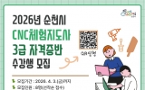 순천 최준규 기자2026. 03.27[시사토픽뉴스] 순천시는 오는 4월 3일까지 ‘2026년 CNC체험지도사 3급 자격증반’ 교육생을 모집한다고 밝혔다. CNC(Computer Numerical Control)는 컴퓨터로 제어되는 기계장치로, 목재 등 재료를 정밀하게 조각하고 절단하는 데 사용한다. 이번 자격증반은 CNC 기계에 대한 기본적인 이론적 교육을 비롯해 2D 도면 제작, 기계 조작 실습, CNC체험지도사 3급 자격증 시험으로 구성된다. 교육은 오는 4월 11일부터 12일까지 이틀간 오전 9시부터 오후 6시까지 순천시목재문화지원센터에서 진행되며, 모집...