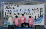 완도 최준규 기자2025. 10.29[시사토픽뉴스]완도군은 ‘청정 완도 가을 섬 여행’ 행사 마지막 날인 10월 26일 해변공원에서 ‘2026 Pre 완도국제해조류박람회’ 성공 개최를 기원하는 퍼포먼스를 진행했다. 2026 Pre완도국제해조류박람회는 완도의 대표 해양자원인 해조류와 전복을 주제로 2026년 5월 2일부터 7일까지 6일간 해변공원 일원에서 열리며 국제 심포지엄, 수출 상담회 등 다양한 프로그램이 진행될 예정이다. 이날 보여준 퍼포먼스는 ‘해조류, 전복하면 완도여라! 2026 Pre 완도국제해조류박람회 성공 개최를 기원합니다!’라는 문구를 캘리그라피로...