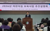 진안군 최준규 기자2026. 03.13[시사토픽뉴스]충주시는 13일 충주시청 중회의실에서 관내 어린이집 원장을 대상으로 ‘2026년 보육사업 추진 설명회’를 개최했다고 밝혔다. 설명회에서는 올해 보육사업 주요 변경 사항과 어린이집 지도·점검 사례를 공유하고 신규 사업을 안내하며 어린이집의 참여와 협조를 요청했다. 또한 어린이집 운영 과정에서 겪는 애로사항과 현장의 다양한 의견을 청취하는 시간을 갖고, 적극적인 소통을 이어갔다. 이와 함께 충주시육아종합지원센터에서 진행하는 다양한 보육 지원 프로그램도 소개됐다. 센터는 보육교직원을 위한 전문 교육과 상담, 현...