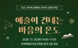 전라북도 최준규 기자2025. 12.26[시사토픽뉴스] 전북특별자치도교육청은 30일 오후 2시 2층 강당에서 ‘아이와 함께하는 학부모 인문학 특강’을 개최한다. 이번 특강은 클래식 음악과 설치미술을 결합한 인문학 프로그램으로 학부모의 문화적 소양을 넓히는 동시에 자녀의 감정과 생각을 이해하고 공감하는 기회를 제공하고자 마련됐다. 1부는 이윤정 피아니스트가 ‘슈만과 클라라, 드라마보다 뜨거운 음악가들의 사랑 이야기’를 주제로, 음악 속에 기쁨과 슬픔을 통해 예술적 성장과 감정의 깊이를 자연스럽게 풀어낸다. 참여를 희망하는 학부모는 사전 QR신청 또는 당일 현...