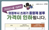 전주시 최준규 기자2026. 02.05[시사토픽뉴스]의정부시의회 조세일 의원(더불어민주당, 송산1·2·3, 고산)은 지난 3일 열린 제341회 임시회 제2차 본회의 5분 자유발언을 통해 종량제 봉투 가격 인하 소식을 밝혔다. 조 의원은 “지난 6개월 넘게 추진해 온 종량제 봉투 가격 인하가 지난해 12월 22일 '의정부시 폐기물 관리 조례' 수정 가결로 결실을 맺었다”며, 오는 4월 1일부터 새로운 가격이 시행될 예정이라고 전했다. 일반용 쓰레기 종량제 봉투의 구체적인 인하 가격은 다음과 같다. ▲ 10리터: 420원 → 360원(60원 인하) ▲ 20리터: 8...