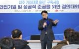 전주시 최준규 기자2026. 02.04[시사토픽뉴스]전주시가 도시의 교통체계 혁신을 이끌 ‘전주 기린대로 BRT 구축사업’을 단 한 건의 안전사고 없이 완성하기로 했다. 시는 4일 전주시청 회의실에서 우범기 전주시장과 공사 현장 도급사 관계자와 건설 관계자 등 50여 명이 참석한 가운데 ‘전주 기린대로 BRT 구축사업 안전기원 및 성공적 준공을 위한 결의대회’를 개최했다. 이날 참석자들은 기린대로 BRT 사업의 성공적 완수를 다짐하고, 공사 과정에서 단 한 건의 안전사고도 발생하지 않는 ‘무재해 시공’을 선언했다. 특히 이날 결의대회에서는 참석자들의 안전 실...