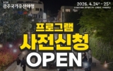 여행/맛집 최준규 기자2026. 04.03[시사토픽뉴스]광주 동구는 오는 24~25일 이틀간 5·18민주광장, 서석초등학교, 광주읍성 유허 등 국가유산 일원에서 열리는 ‘광주 국가유산 야행’ 프로그램의 사전 참여자를 모집한다고 밝혔다. 모집은 오는 6일 오후 1시부터 선착순으로 진행되며, 어린이와 성인 등 누구나 참여할 수 있다. 사전 모집 프로그램 중 ‘남도의례음식장과 함께하는 흑백미식가’, ‘지식가이드 투어’, 광주야행 숙박패키지 ‘세 개의 밤’은 유료로 운영되며, ‘광주읍성 체험극 사또의 하루’, ‘벽돌 미니어처 만들기’, ‘어린이 해설사 투어’, ‘서석초 옛날 교...