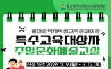 교육 최준규 기자2026. 03.06[시사토픽뉴스]울산학생교육문화회관은 초등학교 5학년 이상 특수교육 대상 학생의 진로 탐색과 소질계발을 돕고자 ‘제1기 주말 문화예술 교실’을 운영한다. 이번 프로그램은 특수교육대상자가 주말을 활용해 깊이 있는 문화예술 활동을 체험하고, 잠재된 소질을 찾아 진로를 탐색하는 기회를 돕고자 마련됐다. 수업은 오는 3월 28일부터 11월 8일까지 총 3기로 나뉘며, 기수별 8주간, 강의는 총 6개다. 철사(와이어) 공예, 목공, 인공지능 제작물(콘텐츠) 제작, 드럼, 그림(그래픽) 디자인, 뉴 스포츠 등 학생들의 흥미와 ...