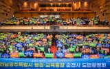 전주시 최준규 기자2026. 02.03[시사토픽뉴스]순천시는 전라남도와 함께 3일 순천문화예술회관에서 전남광주특별시 행정·교육 통합 도민 공청회를 개최하고, 통합 추진의 방향과 핵심 과제를 시민과 함께 논의했다. 이날 행사에는 노관규 순천시장을 비롯해, 김영록 전라남도지사, 김대중 전라남도교육감, 강형구 순천시의회 의장, 허동균 순천교육지원청 교육장, 지역 사회단체 관계자와 시민 등 1,000여 명이 참석해 전남·광주 통합에 대한 높은 관심을 보였다. 공청회는 노관규 순천시장의 환영사를 시작으로, 김영록 도지사의 전남·광주 행정통합 추진 방안 설명, 김대중 교육감의...