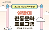 교육 최준규 기자2026. 02.03[시사토픽뉴스]제주도교육청 제주교육박물관은 설 명절을 맞아 12일부터 13일까지 가족 단위 관람객을 대상으로 전통문화를 체험하는 설맞이 프로그램을 운영한다. 이번 프로그램은 새해를 맞아 전통 생활문화를 살펴보고 복과 안녕을 기원하는 옛 풍습을 직접 체험할 수 있도록 기획됐으며 어린이와 보호자가 함께 참여하는 가족 중심의 체험형 프로그램으로 구성됐다. 주요 프로그램으로는 복조리를 직접 엮으며 새해의 복을 기원하는 '복을 담고 마음을 엮는 복조리', 제주 설 명절 ‘정월멩질’의 음식 문화를 살펴보고 절벤·솔벤·기름떡을 만들어 나...