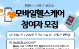 익산시 최준규 기자2026. 03.25[시사토픽뉴스]천안시 서북구보건소는 오는 30일부터 ‘모바일 헬스케어’ 사업 참여자를 모집한다고 25일 밝혔다. 모집 대상은 스마트폰을 소지한 만 19세 이상 65세 미만의 서북구 거주자 또는 서북구 소재 직장인이다. 혈압과 공복혈당, 허리둘레, 중성지방, HDL-콜레스테롤 등 건강위험요인 중 1개를 보유한 경우 우선 선발한다. 다만 관련 질환을 이미 진단받았거나 약물 치료를 받고 있는 경우에는 참여가 제한된다. 참여자로 선발되면 모바일 앱과 연동되는 활동량계(스마트워치)와 함께 6개월간 맞춤형 비대면 건강관...