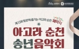 남원시 최준규 기자2025. 12.11[시사토픽뉴스]순천문화재단은 2025년 한 해를 마무리하며 지역 예술인과 시민이 함께 만들어온 ‘제13회 항꾼에 즐기는 아고라 순천 폐막식_송년음악회’를 오는 13일 오후 3시 조례호수공원 원형광장에서 개최한다. 이번 ‘아고라 순천 폐막식’은 순천시 심포니 오케스트라, 빅보스 마칭밴드의 사전 공연을 시작으로 2025 아고라 순천 우수예술가 공연 및 미스트롯 수상 이력이 있는 가수 미스김의 축하공연 순으로 아고라 순천 대장정의 막을 장식할 예정이다. 올해 아고라 순천은 시민문화예술경연대회 ‘항꾸네 페스타’를 통해 시민 누구나 ...