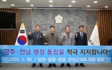 건강 최준규 기자2026. 01.30[시사토픽뉴스]담양군·함평군·영광군·장성군 등 전남 4개 군의회 의장단은 30일 영광군의회에서 광주–전남 행정통합을 염원하는 공동 퍼포먼스에 참여했다. 이번 퍼포먼스는 행정구역의 경계를 넘어 광주와 전남이 하나의 생활권이자 경제권으로 도약하기 위한 의지와 공감대를 확인하기 위해 마련됐다. 특히 지역 간 협력과 상생 발전의 필요성에 대해 지방의회 차원에서 뜻을 모았다는 점에서 의미를 더했다. 의장단은 “행정통합은 지역의 미래 경쟁력 확보와 균형발전을 위해 더 이상 미룰 수 없는 과제”라며 “지금이야말로 광주와 전남의 미래를 결정할...