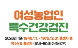 담양 최준규 기자2026. 03.13[시사토픽뉴스]옹진군은 올해 처음으로 여성농업인의 건강권 보호를 위한'여성농업인 특수건강검진사업'을 본격 시행한다고 밝혔다. 이번 사업은 농작업으로 인해 근골격계 질환 등 직업성 질환에 취약한 여성농업인을 대상으로 건강검진 및 예방 상담을 지원하는 사업으로 여성농업인의 삶의 질 향상과 안정적인 영농 활동을 지원하기 위해 추진된다. 지원 대상은 옹진군에 거주하며 농업경영체에 등록된 짝수년도 출생의 51세부터 80세까지 여성농업인으로, 올해는 총 60명을 대상으로 실시되며, 검진 비용은 1인당 22만 원이며, 이 중 19만8천 원...