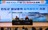 전라남도 최준규 기자2026. 03.22[시사토픽뉴스]진도군은 기후에너지환경부가 ‘진도 해상풍력 집적화단지’를 지정함에 따라 21일에 진도군청 대회의실에서 설명회를 개최하며, 진도군의 미래 먹거리 산업과 바람연금 시대의 개막을 알렸다. 이번 설명회에는 김희수 진도군수, 박지원 국회의원, 박금례 진도군의회의장과 군의원, 김인정 전남도의원, 김미순 진도부군수 및 간부공무원, 7개 읍면 이장단장과 주민자치회장 등 약 80명이 참석했다. 군은 참석자들에게 ‘해상풍력 집적화단지 지정’과 관련된 내용을 설명했다. 진도 해상풍력 발전의 총규모는 3.6기가와트(GW)로 약 250...