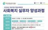 전라북도 최준규 기자2026. 01.27[시사토픽뉴스]양주여성새로일하기센터가 2월 5일부터 24일까지 여성 구직자를 대상으로 직업교육훈련 과정인 ‘사회복지 실무자 양성과정’ 교육생 20명을 모집한다. ‘사회복지 실무자 양성과정’은 사회복지 현장에서 즉시 활용 가능한 실무 역량을 갖춘 인재 양성을 목표로 기획된 취업지원 프로그램으로, 사회복지 분야의 높은 인력 수요에 힘입어 매년 많은 지원자가 참여하고 있다. 이번 교육은 3월 12일부터 5월 8일까지 진행되며, 하루 4시간씩 총 172시간 과정으로 운영된다. 교육 내용은 ▲사회복지 행정·재무 실무 전반 ▲장기요양기관(...
