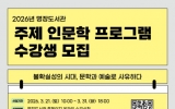 교육 최준규 기자2026. 03.19[시사토픽뉴스]부산시교육청 명장도서관은 4월 9일부터 30일까지 매주 목요일마다 도서관 평생학습실에서 성인 15명을 대상으로 인문학 프로그램 ‘불확실성의 시대, 문학과 예술로 사유하다’를 운영한다. 이번 프로그램은 급변하는 사회 속에서 현대인이 마주하는 불안과 불확실성을 문학과 예술을 통해 성찰하고, 삶을 바라보는 다양한 인문학적 시각을 나누기 위해 마련했다. 강의는 ‘인문학당 달리’의 최정아 부소장이 맡아 세계 문학 작품을 중심으로 예술과 인간 존재를 탐구하는 방식으로 진행한다. 호메로스의 ‘오디세이아’, 알베르 카뮈의 ‘...