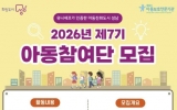 사회 최준규 기자2026. 03.04[시사토픽뉴스]성남시는 오는 3월 25일까지 ‘제7기 아동참여단’으로 활동할 80명의 아이들 단원을 모집한다. 성남시 아동참여단 ‘아이들’은 아동 권리와 관련된 당사자들의 의견을 시책에 반영하기 위한 아동정책 제안 기구다. 참여 자격은 지역 소재 초등학교에 재학 중이거나 성남시에 주민등록을 둔 7~12세(2014~2019년생)다. 아동참여단으로 선발되는 초등학생은 생활 현장에서 아동 권리 침해 사례를 찾아내 개선에 관한 의견을 내고, 아동정책에 대한 아이디어를 제시하는 활동을 한다. 아동 권리 인식 개선 캠페인, 역량 강화를...