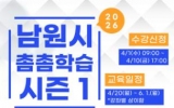 남원시 최준규 기자2026. 03.18[시사토픽뉴스]남원시는 시민의 다양한 학습 수요를 반영한 ‘2026년 남원시 수시특강 촘촘학습 시즌1’을 오는 4월 20일부터 5월 27일까지 운영한다. 수강신청은 4월 1일 오전 9시부터 4월 10일 오후 5시까지 남원시 통합예약·신청시스템을 통해 선착순으로 진행된다. 촘촘학습 시즌1은 시민의 삶 가까이에서 배움을 지원하는 ‘일상채움 평생교육’과 생각의 폭을 넓히는 ‘사유반짝 평생교육’으로 나누어 운영된다. 생활밀착형 실용 강좌와 인문·사유형 강좌를 균형 있게 구성해 시민들이 취향과 관심에 따라 폭넓게 참여할 수 있도록 ...