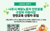 나주 최준규 기자2026. 03.18[시사토픽뉴스]전남 나주시가 교통사고 위험에 노출된 배달노동자의 안전을 강화하고 사고 예방을 위한 지원에 나선다. 나주시는 배달노동자의 안전한 노동환경 조성을 위해 배달노동자 안전용품 구입비 지원사업을 추진하고 이륜차 교통안전교육을 실시한다고 18일 밝혔다. 시는 2025년에 이어 2026년에도 고용노동부 ‘취약노동자 일터개선 지원사업’ 연장 심사 선정됨에 따라 상반기 사업을 추진하며 나주시에 거주하는 배달노동자 20명을 대상으로 안전용품 구입비를 1인당 최대 20만 원까지 지원한다. 이번 사업은 배달 과정에서 발생할 수 있는...