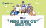 익산시 최준규 기자2026. 03.18[시사토픽뉴스]예산군보건소는 어르신의 자발적인 신체활동 참여를 유도하고 건강한 노후생활을 지원하기 위해 ‘2026년 어르신 건강왕 선발’ 참가자를 모집한다고 밝혔다. 이번 프로그램은 65세 이상 군민을 대상으로 체력, 걷기, 근력 분야로 나눠 진행되며 분야별 100명 이내의 참여자를 모집하며, 운영 기간은 4월부터 9월까지로 사전·사후 건강측정과 꾸준한 운동 실천을 통해 어르신들의 건강 변화를 확인하고 우수 참여자를 선발할 예정이다. 체력 분야 참여자는 체지방률, 골격근량, 허리둘레, BMI(체질량지수) 등 신체 측정과 함께 상...
