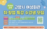 사회 최준규 기자2026. 03.18[시사토픽뉴스]고양특례시 여성회관이 오는 4월 7일부터 2026년 취·창업 특강(2기) 수강생을 모집한다. 2기 교육 기간은 4월 18일부터 7월 22일로, 총 8개 강좌를 운영한다. 강좌는 △창의수학 늘봄교육 지도사 1급 자격증 △(중급)책놀이지도사 1급 과정 △AI 활용 무자본 온라인 창업 △청소매니저 양성 과정 △AI 활용 문해력 향상 △AI와 함께 유튜브 크리에이터 △스마트 비서 AI 활용하는 방법 △향기로운 마음 챙김 명상 등이 있다. 1기 성과를 바탕으로 2기는 입문에서 중급 수준으로 심화하고, 수요 맞춤형 신규 과...