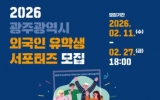 광주광역시 최준규 기자2026. 02.13[시사토픽뉴스]광주광역시는 광주의 매력과 지역대학 정보를 세계에 알릴 ‘제3기 외국인 유학생 서포터즈’ 20명을 오는 27일까지 모집한다. ‘유학생 서포터즈’는 사회관계망서비스(SNS) 등을 통해 광주 유학생활·관광정보를 알리고, 광주시의 다양한 행사에 직접 참여하는 등 민간외교관 역할을 맡게 된다. 신청 자격은 광주지역 대학(원)에 재학 중이거나 입학이 확정된 외국인 유학생이다. 광주시는 SNS 활용 능력, 한국어 능력, 참여 의지 등을 종합적으로 판단해 성별·국적·재학 대학 균형을 고려해 3월 중 최종 인원을 발표할 예...