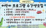 [시사토픽뉴스]영광군은 어린이의 건강한 성장과 다양한 문화·예술 체험 기회를 제공하기 위해 오는 3월 30일부터 4월 1일까지 2026년 상반기 어린이 프로그램 수강생을 모집한다고 밝혔다. 이번 프로그램은 9세 이하 아동을 대상으로 신체활동과 예술, 정서발달을 돕는 다양한 체험형 교육으로 구성되어 ▲베이베붐 ▲트니트니 ▲튼튼쑥쑥 키즈요가 ▲키즈발레 ▲감성동화구연 ▲키즈드럼 ▲사물악기 체험놀이 ▲우리노래 우리놀이 ▲발표력동화구연 등 총 9개 분야 18개 강좌로 운영될 예정이다. 특히 신체활동 중심 프로그램부터 음악·놀이·동화...