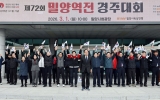 사회 최준규 기자2026. 03.02[시사토픽뉴스]경남 밀양시는 1일, 제107주년 3·1절을 맞아 선열들의 숭고한 독립 정신을 기리고 시민 화합을 도모하기 위한 ‘제72회 밀양역전경주대회’를 성황리에 마무리했다고 밝혔다. 영남권 항일운동의 중심지인 밀양은 김원봉, 윤세주, 김상윤, 최수봉 등 수많은 독립운동가를 배출한 독립운동의 성지다. 시는 이러한 역사적 자부심을 바탕으로 선열들의 기개를 잇고 시민의 건강 증진과 결속력을 높이기 위해 이 대회를 72회째 이어오고 있다. 이번 대회는 16개 읍·면·동을 대표하는 선수단 140여 명이 참가한 가운데, 총 52.9k...