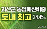 사회 최준규 기자2026. 01.23[시사토픽뉴스]충북 괴산군이 농업·농촌에 ‘확실한 투자’를 이어가며 인력난 해소, 생산비 절감, 정주여건 개선, 스마트농업 전환까지 ‘잘 사는 농업·살고 싶은 농촌’ 실현에 속도를 내고 있다. 군이 23일 공개한 2026년 시·군별 예산 현황에 따르면 괴산군의 본예산 대비 농업 부문 예산 비율은 24.45%로 충북 11개 시·군 가운데 1위에 올랐다. 도 전체 평균(11.86%)과 비교해도 두 배를 훌쩍 넘는 지원이다. 군이 농업을 단순 산업이 아닌 지역의 기반으로 보고 예산을 정책 효과로 연결해 왔음을 보여주는 수치다. 첫 ...