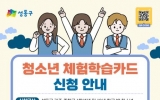 정읍시 최준규 기자2026. 03.16[시사토픽뉴스]서울 성동구는 청소년들에게 진로, 문화, 예술 등 다양한 체험활동 기회를 제공하기 위해 연간 최대 20만 원의 ‘청소년 체험학습카드’를 지원한다고 밝혔다. '청소년 체험학습카드 지원 사업'은 청소년들이 문화·예술·체육 분야의 다양한 체험활동을 통해 미래 역량을 강화하고, 자기주도적 성장 기반을 마련할 수 있도록 돕는 바우처 사업이다. 지원 대상은 신청일 기준 성동구에 주민등록을 둔 중학교 1학년 재학생 또는 13세 학교 밖 청소년이다. 신청 방법은 성동구청 누리집(홈페이지)에서 온라인 신청 후 승인이 완료되면 거주...