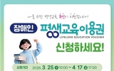 무주군 최준규 기자2026. 03.16[시사토픽뉴스] 부산시는 오는 3월 25일부터 소외계층 성인(저소득층 및 장애인 등)을 대상으로 '2026년 부산광역시 평생교육이용권' 신청․접수를 시작한다고 밝혔다. ‘평생교육이용권’은 사회·경제적 여건에 따른 평생교육 참여 격차를 완화하고 평생교육 기회를 확대하기 위해 교육비를 지원하는 제도다. 주요 지원 대상은 부산에 거주하는 성인으로, ▲저소득층(19세 이상 기초생활수급자·차상위계층) ▲장애인(19세 이상 등록장애인) ▲노인(65세 이상) ▲디지털 관련 평생교육 수강 희망자(30세 이상) 등이며, 특히 2026년...