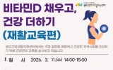 완주군 최준규 기자2026. 02.27[시사토픽뉴스]연수구 송도건강생활지원센터는 주민들의 골다공증, 근감소증 등 근골격계 질환을 예방하고 건강한 노후를 지원하기 위해 ‘비타민D 채우고, 건강 더하기’ 프로그램 참여자를 3월 4일부터 모집한다. 비타민D는 뼈 건강과 면역력 강화에 필수적인 영양소로, 국민건강영양조사에 따르면 한국인의 약 90%가 혈중 비타민D 수치 부족 또는 결핍 상태인 것으로 나타났다. 특히 실내 생활이 많은 현대인들에게 비타민D 결핍은 단순한 영양 부족을 넘어, 골다공증, 대사질환, 심지어 우울감 등 정신건강 문제로까지 이어질 수 있어 일상 ...