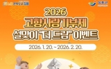 경제 최준규 기자2026. 01.21[시사토픽뉴스]장흥군은 설 명절을 앞두고 고향사랑기부제 활성화를 위해 1월 20일부터 2월 20일까지 ‘2026 설맞이 고향사랑기부제 더 드림 이벤트’를 진행한다. 이벤트 기간 중 ‘고향사랑e음’을 통해 장흥군에 10만 원 이상 기부하면 별도의 신청 절차 없이 자동으로 이벤트에 응모된다. 해당 조건을 충족한 기부자 전원에게는 모바일 상품권 5,000원이 경품으로 제공된다. 또한 이벤트 종료 후에는 무작위 추첨을 통해 10명을 선정, 5,000원권 모바일 상품권을 추가로 증정하는 혜택도 마련돼 있어 최대 1만 원 상당의 경품을 ...