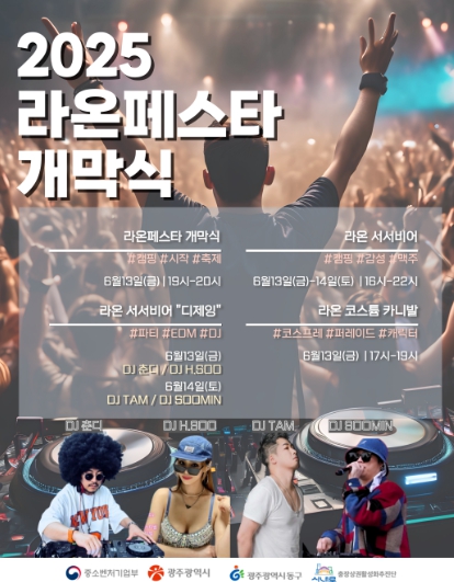 한편 충장 상권 활성화 사업 일환으로 지난 2022년부터 추진 중인 ‘라온 페스타’는 충장로와 지하 상점가의 소비 촉진과 상권 내 방문객을 유도해 지역경제를 활성화하기 위해 마련됐다. ‘즐거운(라온)’이라는 이름처럼, 남녀노소 누구나 함께 즐길 수 있는 다양한 문화 프로그램을 11월까지 충장로와 지하상가 일대에서 선보인다.