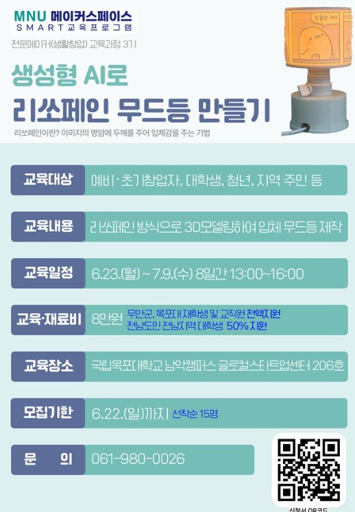 한편, MNU메이커스페이스에서는 예비 창업자와 주민을 대상으로 ‘생활메이커 클래스’, 청소년 대상의 ‘6월 메이커 체험 프로그램’ 참가자도 모집하고 있다.