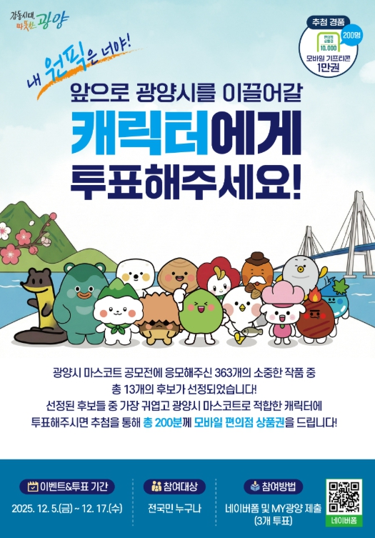 ![]() 광양시, ‘마스코트 디자인 공모전’ 선호도 투표 |