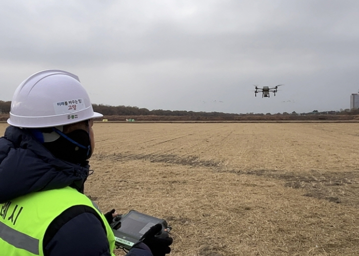 ![]() 드론을 활용해 철새들을 위한 볍씨를 살포하고 있다. |