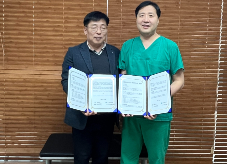![]() 영덕군보건소 오동규 소장(왼쪽)과 영덕경대안과의원 이상민 원장이 업무 협약 재체결을 기념하고 있다. |