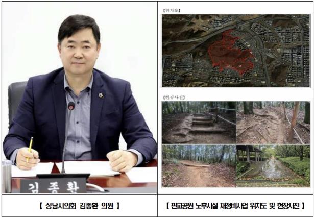 ![]() 성남시의회 김종환 의원, 안철수 국회의원과 함께 ‘판교공원 노후시설 재정비사업’ 본격 추진 |