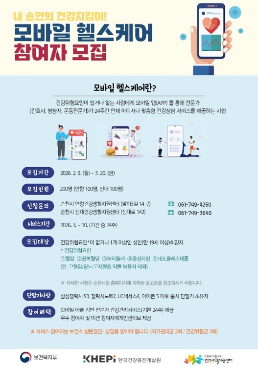 ![]() 2026년 ‘보건소 모바일 헬스케어’ 사업 참여자 모집 |