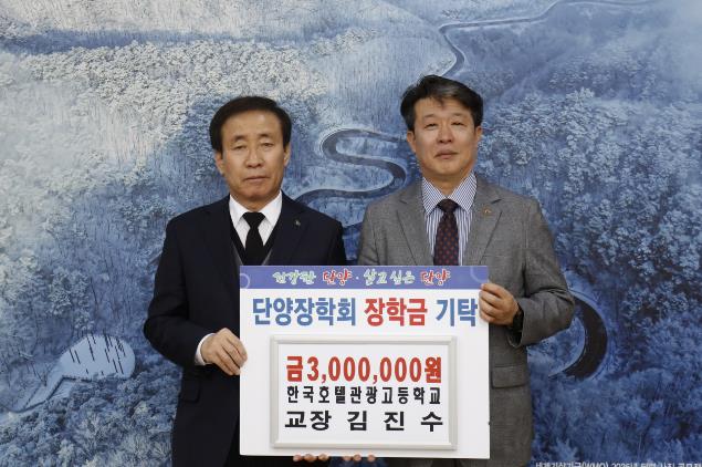 신정수 대표는 2019년부터 단양장학회에 장학금을 꾸준히 기탁해 오고 있으며, 이번 기탁을 포함해 총 8회에 걸쳐 누적 900만 원의 장학금을 전달했다.