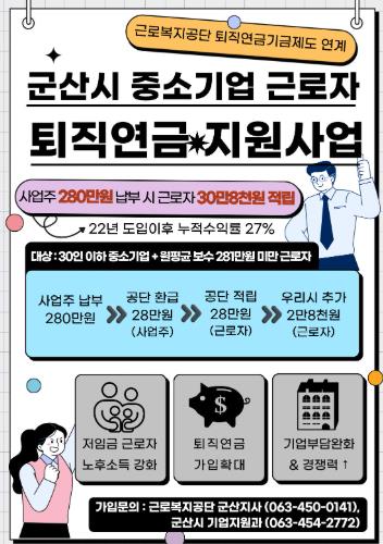 ![]() 군산시, 전국 최초 중소기업 근로자 퇴직연금 지원사업 시행 |