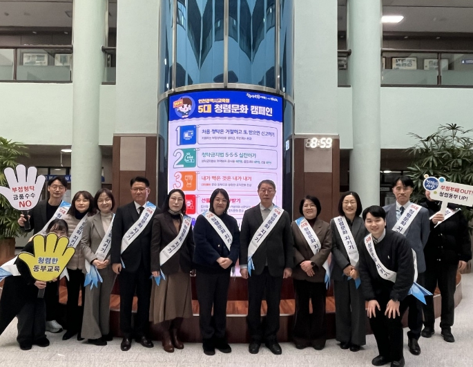 이번 캠페인은 내부 공직기강을 확립하고 교육청을 방문하는 시민에게 인천교육의 ‘5대 청렴 문화’를 알려 지역사회 전반에 청렴 의식을 확산시키고자 마련했다.