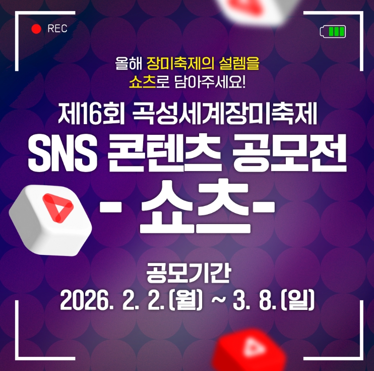 접수 방법과 세부 일정은 군 홈페이지 및 공식 SNS 채널을 통해 확인할 수 있으며, 총시상금은 770만 원 규모로 수상작은 축제 공식 홍보물과 온라인 채널 콘텐츠 등으로 활용된다.