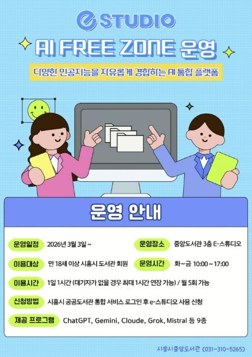 전행주 시흥시중앙도서관장은 “인공지능 시대에 시민 간 정보 격차를 완화하고 정보접근권을 보장하는 한편, 창의적인 콘텐츠 제작 활동을 지원해 시민의 인공지능 활용 역량을 지속적으로 높여 나가겠다”라고 밝혔다.