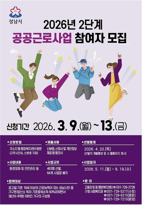![]() 2026년 2단계 공공근로사업 참여자 모집 홍보 안내문 |