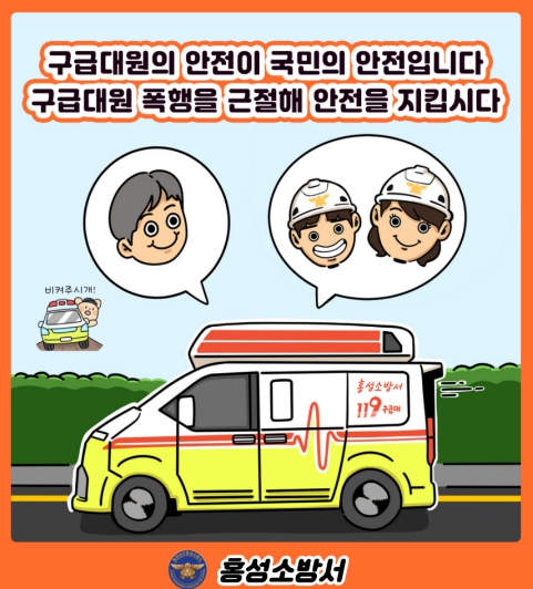 이에 홍성소방서는 구급대원 폭행 피해 예방을 위해 ▲다기능 조끼 및 웨어러블 캠 등 장비 확보 ▲폭행 피해 예방·대응을 위한 교육 ▲홈페이지·SNS 등에 구급대원 폭행 근절 홍보 등을 추진하고 있다.