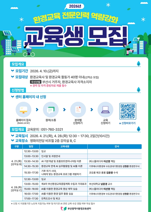 이번 교육은 시가 주최하고 부산광역시환경교육센터가 주관하며, 환경교육 현장에서 활용할 수 있는 실무 중심 교육으로 마련됐다.