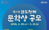 김제시 최준규 기자2026. 02.26[시사토픽뉴스] ‘치유의 섬’ 완도군에서는 많은 사람들이 문학의 향기로 마음을 치유할 수 있도록 ‘제1회 완도 청해 문학상’ 공모전을 연다. 문학상 공모전은 완도가 지닌 ‘치유’를 문학의 영역으로 확장해 완도의 가치를 알리고 완도 문학의 저변을 넓히기 위해 마련됐다. 특히 공모전이 첫 회임에도 총 상금이 4,100만 원에 달하는 등 전국 규모의 수준으로 첫발을 내디딘다. 공모는 세 부문으로 진행된다. 일반부(20세 이상 국민) 참가 요건은 2년 이내에 출간(미 수상)한 시 또는 소설 1권, 청소년부(19세 이상 전...