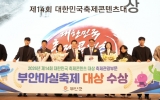 정치 최준규 기자2026. 02.24[시사토픽뉴스]부안군은 24일 (사)한국축제콘텐츠협회 주최로 서울에서 열린 제14회 대한민국 축제 콘텐츠 대상 시상식에서 축제관광 부문 대상을 수상했다고 밝혔다. 지난해 제12회 부안마실축제는 해뜰마루 지방정원에서 열린 두번째 축제로 ‘5월의 선물, 가족여행 부안’이라는 슬로건에 부합하는 참신하고 다양한 콘텐츠를 선보여 대한민국 축제콘텐츠 대상을 수상했다. 호평을 받은 주요 프로그램으로는 부안의 13개 읍면의 특색을 살려 마실의 정체성을 보여준 ‘최고의 마실을 찾아라’, 엄마‧아빠들의 경연대회인 ‘마마스앤파파스 뮤직페스티벌’, ...