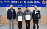 군산시 최준규 기자2026. 02.23[시사토픽뉴스]광주광역시체육회가 23일 15시 체육회관 중회의실에서 ‘2026 전문체육지도자 임명장 수여식’을 개최했다고 밝혔다. 수여식에는 전갑수 체육회장, 김영삼 사무처장, 전문체육지도자 등 관계자 50여명이 참석한 가운데 제107회 전국체육대회 등을 앞두고 훈련 지도에 전념하고 있는 지도자들을 임명하고 격려했다. 시 체육회는 육상, 복싱, 펜싱 등 27개 종목에 29명의 전문체육지도자들을 배치하여 지역 선수들의 경기력 향상과 체계적 선수 육성을 통한 지역 체육 경쟁력 강화를 도모한다. 모든 지도자는'국민체육진흥법'...